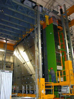 Das Experiment steigt in einem Untergrund-Labor im Gran Sasso-Massiv bei Rom. Die Physiker haben dort einen sogenannten Neutrino-Detektor aufgebaut: Ein Koloss von 1800 Tonnen, der aus 1-Millimeter dicken Bleiplatten besteht. Dazwischen sind Photoplatten geschaltet um die geladenen Teilchen nachzuweisen, die bei der Neutrino-Reaktion entstehen. Die Filmplatten werden schliesslich an computergesteuerten Mikroskopen an der Uni Bern ausgewertet.