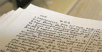 Das Wörterbuch, das Altarmenisch in modernes Armenisch übersetzt, hilft Tara Andrews, die alten Texte zu verstehen.