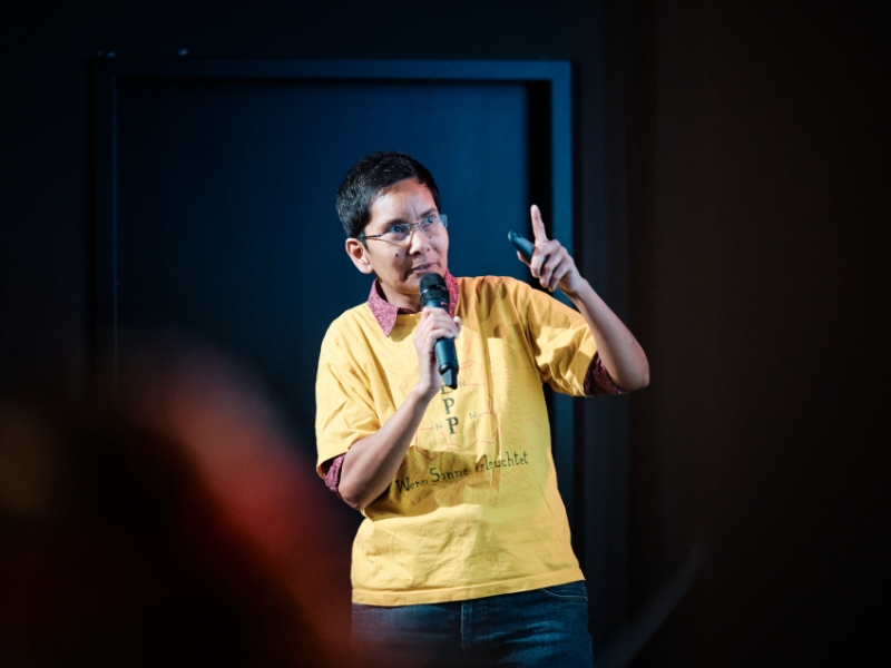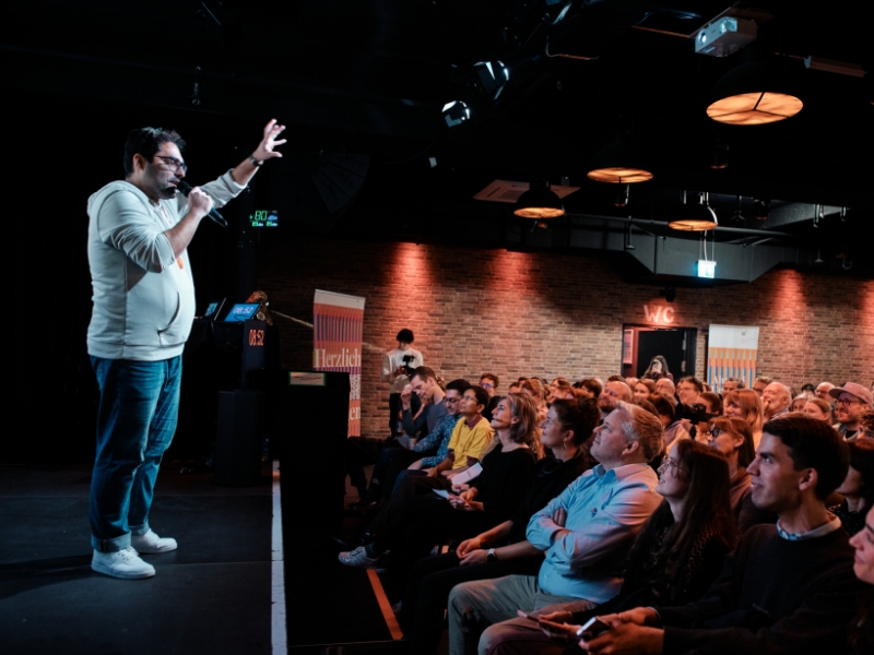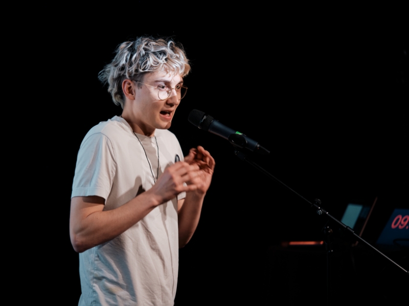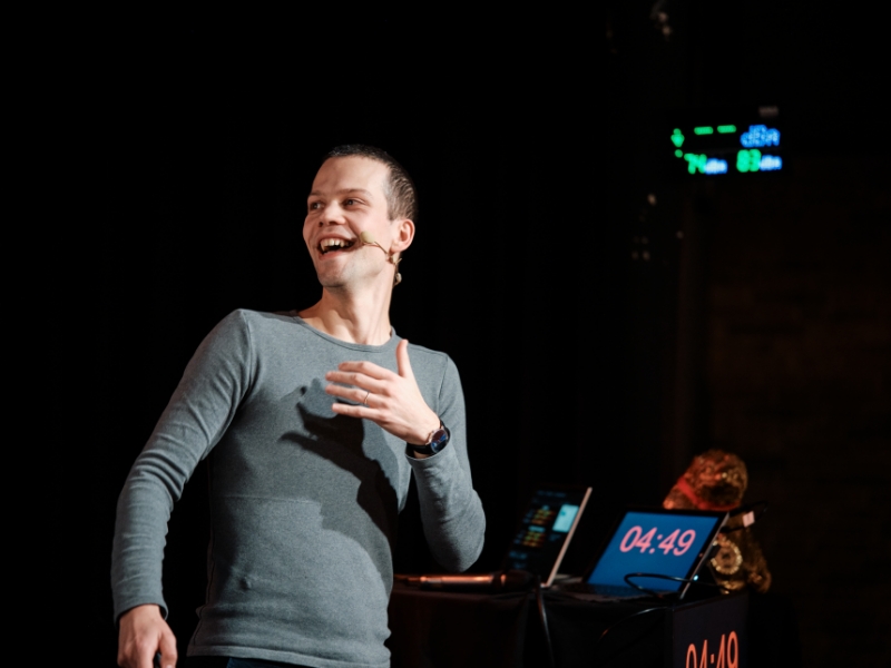 In seinem Slam thematisierte Yaser Balmohammadi Moleküle und die Frage, ob diese uns verstehen würden oder gar mit uns kommunizieren könnten. Er ist nämlich der Überzeugung, dass Moleküle uns verstehen. Es komme nur darauf an, wie wir mit ihnen reden. Die richtige Sprache habe er aber offenbar noch nicht gefunden, stellte er fest: «Ich singe zum Beispiel regelmässig für meine Kristalle, aber sie verstehen meine ‹Love Language › irgendwie nicht.»