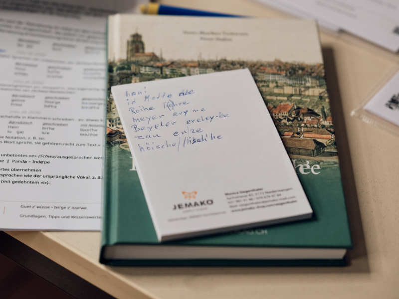 Was mitunter kompliziert klingt, klärt sich bei Viktors Erklärungen. Das berndeutsche «Tschou» beispielsweise tönt auf Mattenenglisch wie «Ieu’tsche», man schreibt aber «Iu’tsche». Würde das «e» geschrieben, wäre die Rückübersetzung unklar, weil «Tschoeu» entstehen würde. Gleichzeitig sei beim Sprechen das unbetonte «e» wichtig, damit «iu» nicht wie das englische «you» klingt. «Der Schwung oder die Klangfarbe des Originalwortes muss ins Mattenenglische transferiert werden», sagt Viktor.